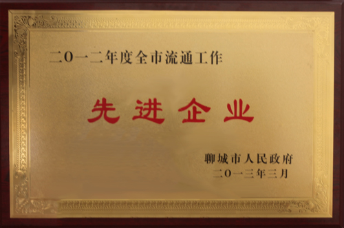 公司荣获“2012年度全市流通工作先进单位”荣誉称号