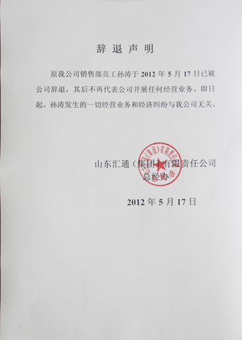 关于辞退销售部员工孙涛的声明